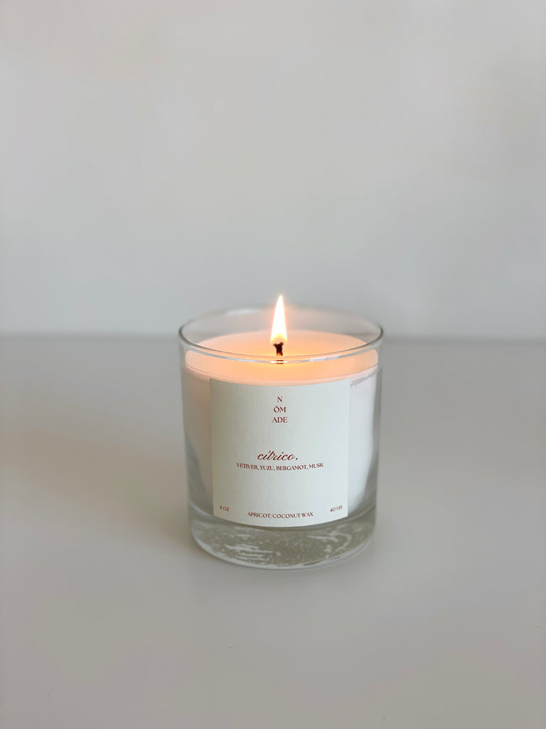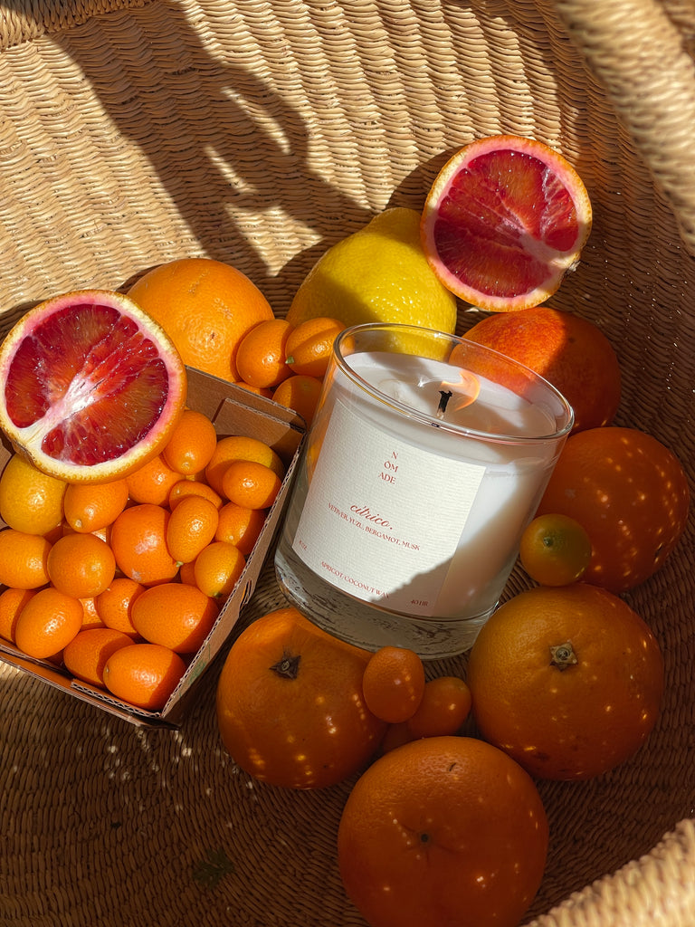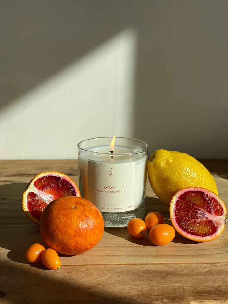 Cítrico meaning ‘citrus’ in Spanish. Our cítrico candle smells like juicy summer fruits fresh picked from the garden. With its notes of yuzu, bergamot, vetiver, and musk, your senses will be transported to a summer afternoon spent under the sun.