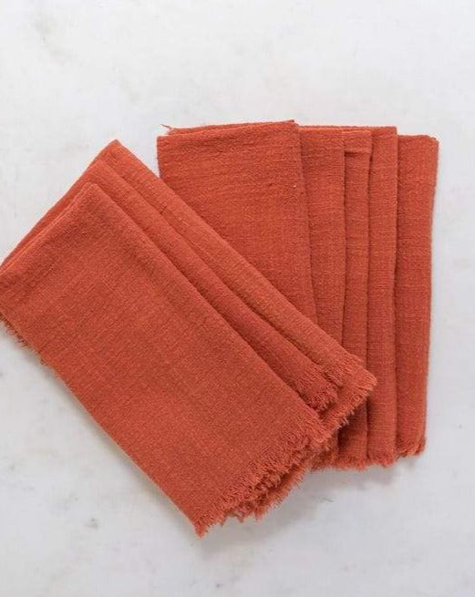 100% cotton gauze napkin set, crafted with care from premium-quality plant dyed cotton gauze. The hand-frayed edges lend an artisanal touch, while the softness and durability of the fabric ensure a delightful tactile experience.