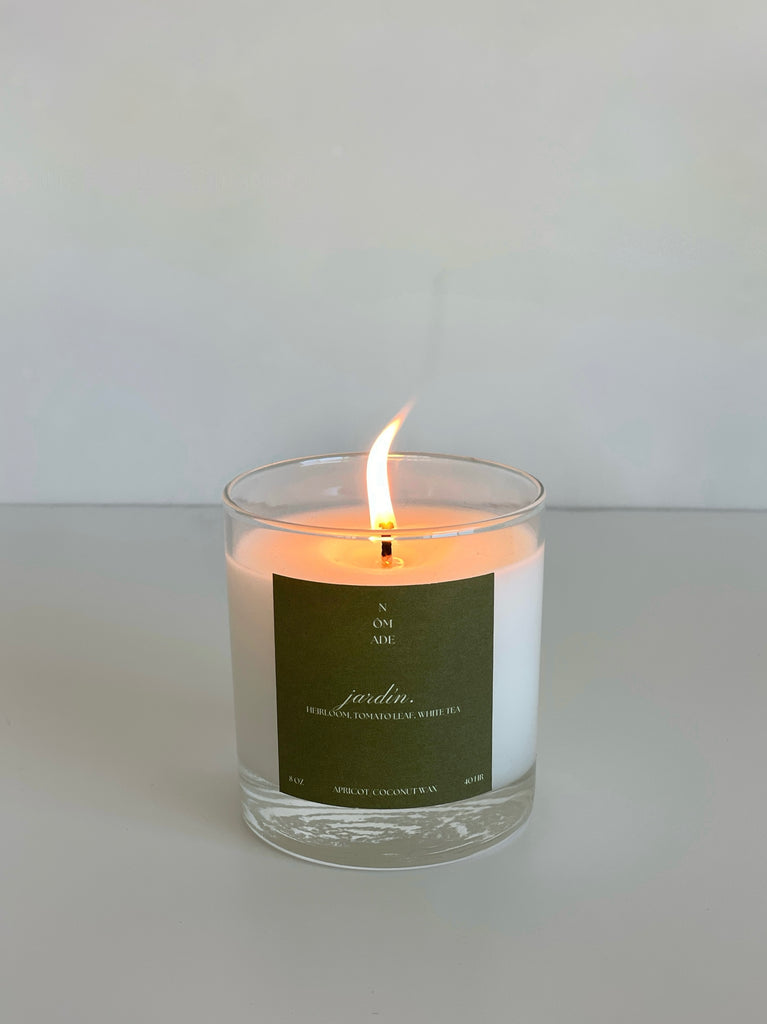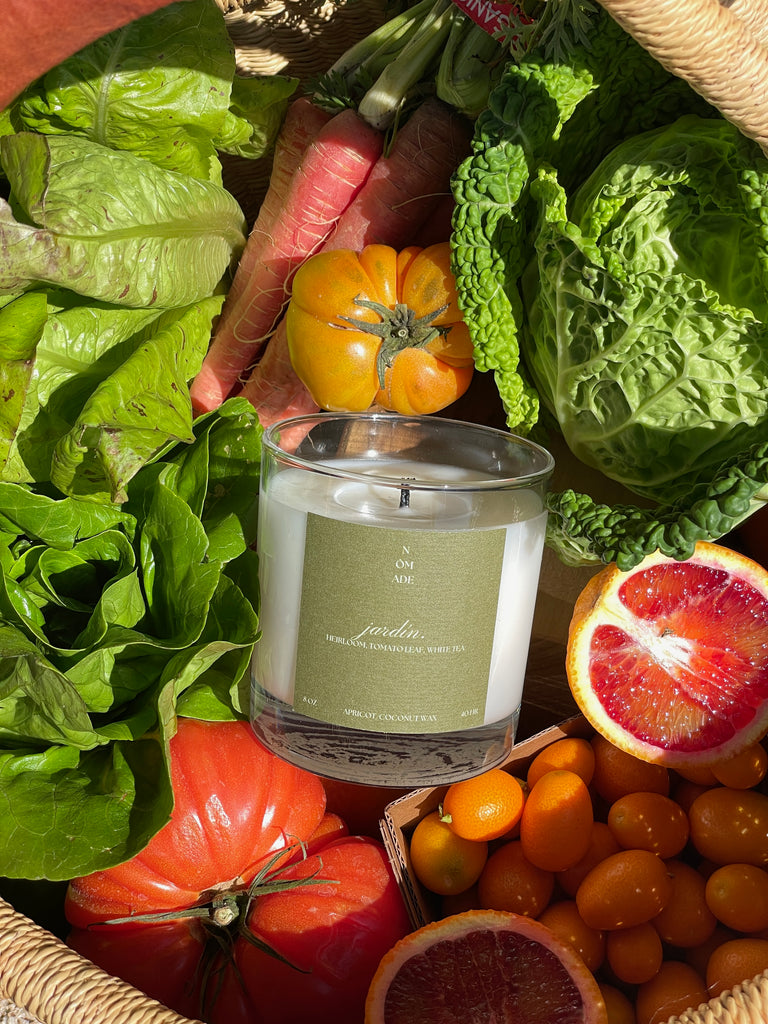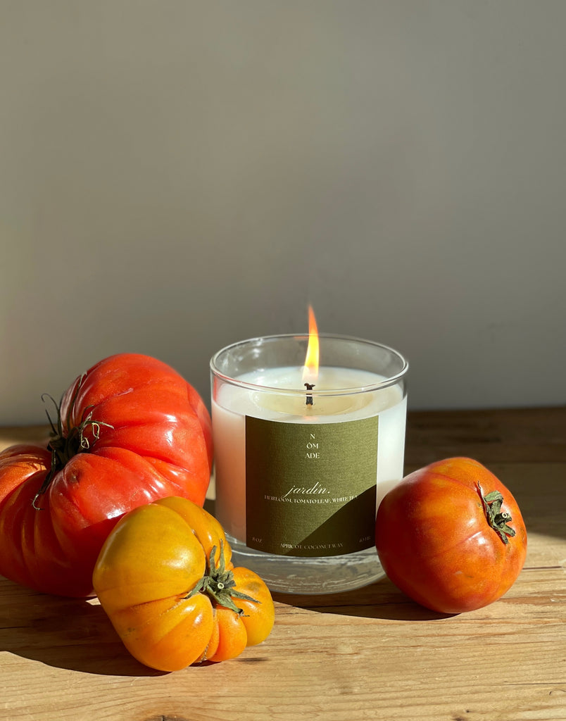 Jardín, meaning ‘garden’ in Spanish smells like a late summer morning walking through the garden. Basket full of heirloom tomatoes, ripened on the vine by the summer sun and bursting with subtle sweetness.