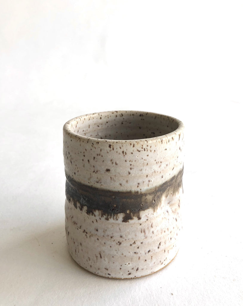 Gorgeous speckled tumbler by artist Gina DeSantis that is perfect for your favorite beverage. Each tumbler has a thumb nook for comfortable grip.