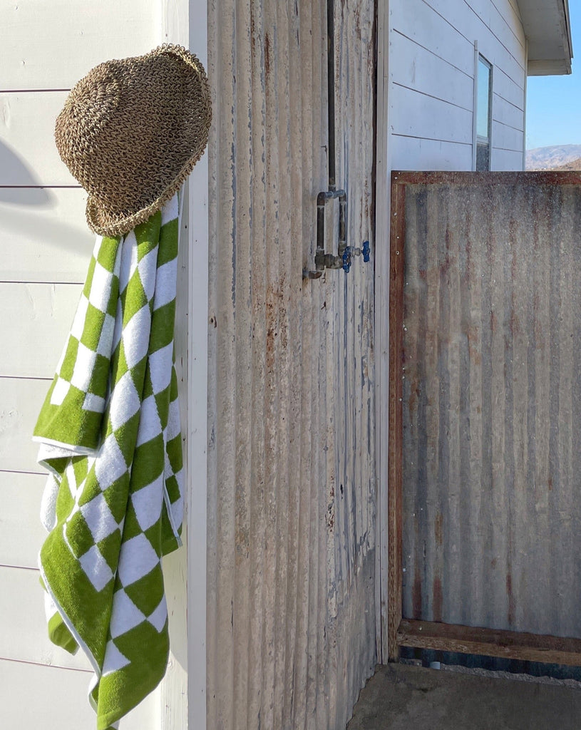 This organic cotton checkered towel is made in Portugal on jacquard looms, a special centuries-old weaving technique.