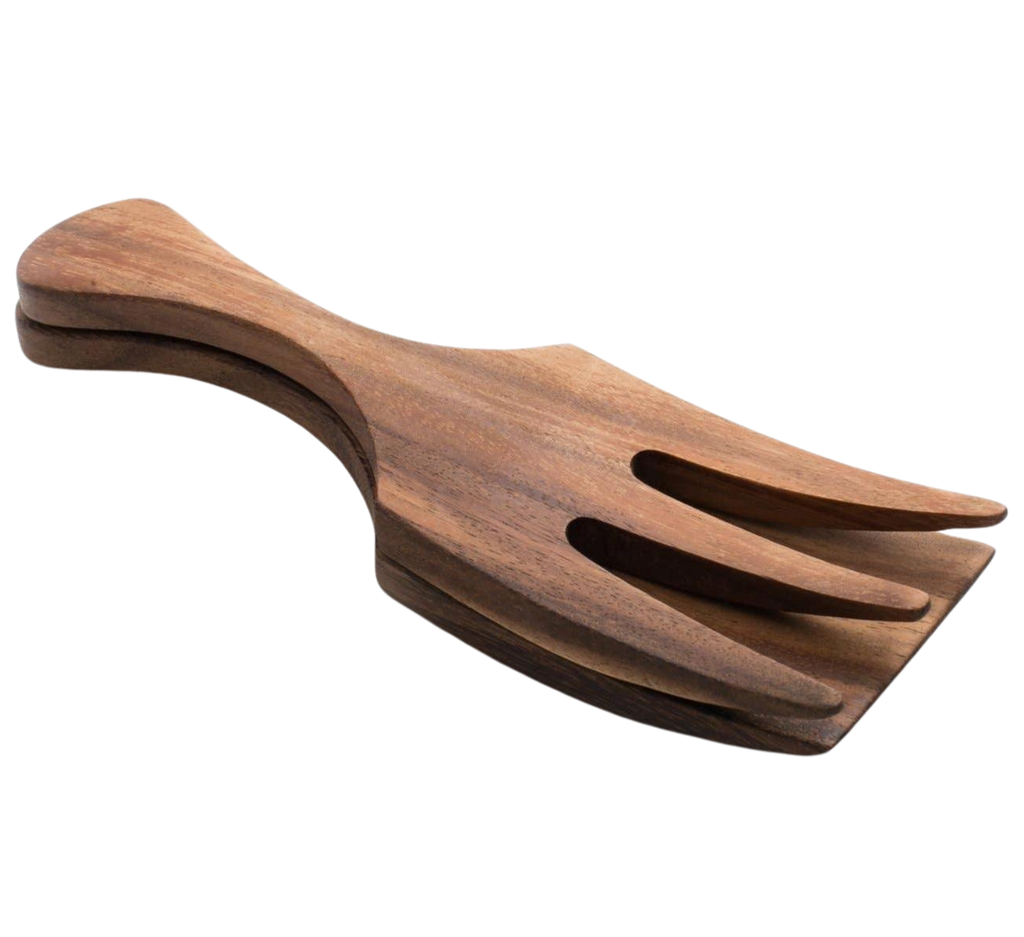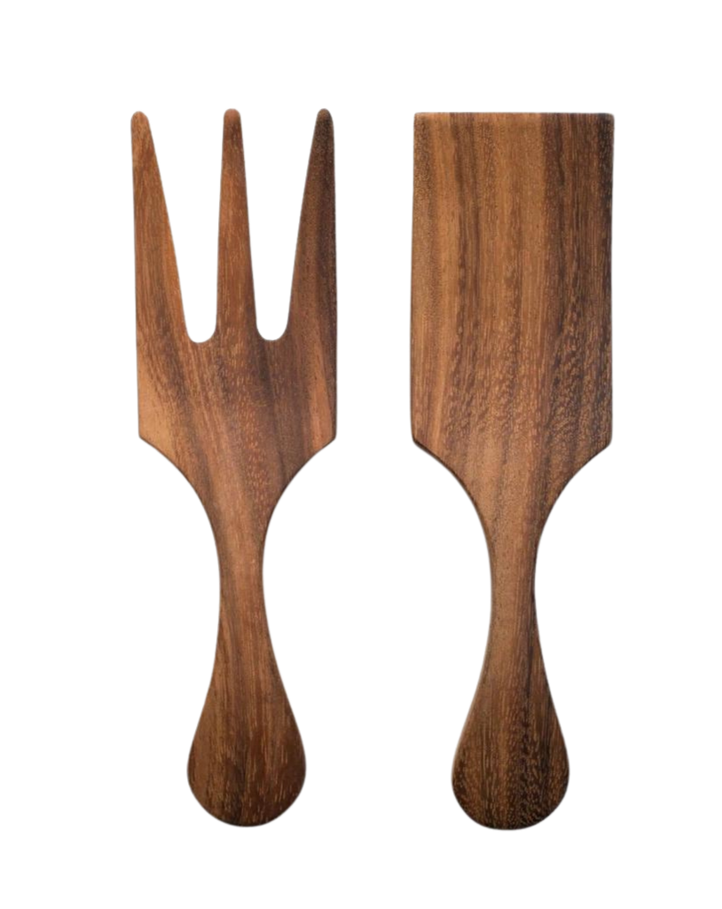 These handmade servers are carved from gorgeous acacia wood, known for its unique and natural contrasting patterns. Perfect for tossing and serving your favorite salads.