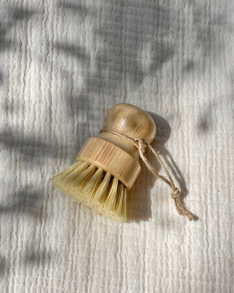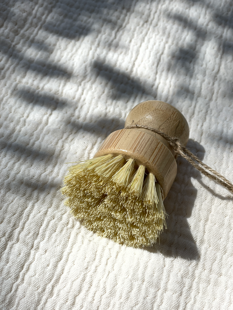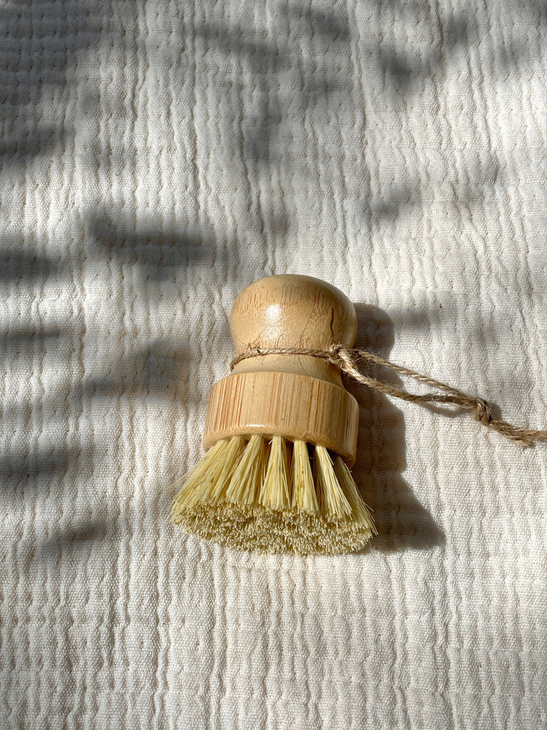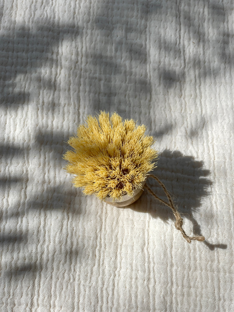 Ergonomic wooden handle with sisal plant fiber bristles (made from the agave plant).