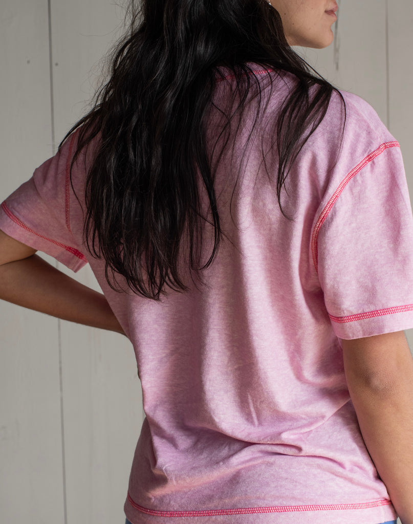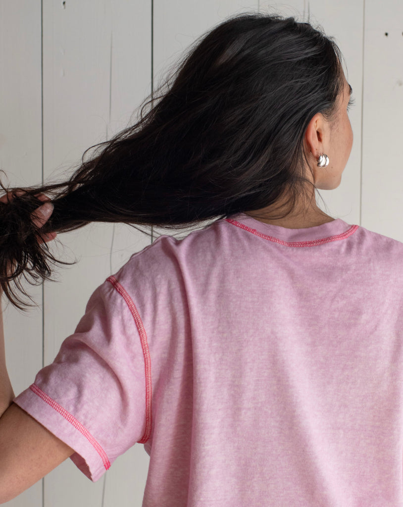 The tee to live in. Embellished with unique topstitching throughout, this tee adds elevated contrast to a carefree look in a sustainable weave of hemp and cotton.
