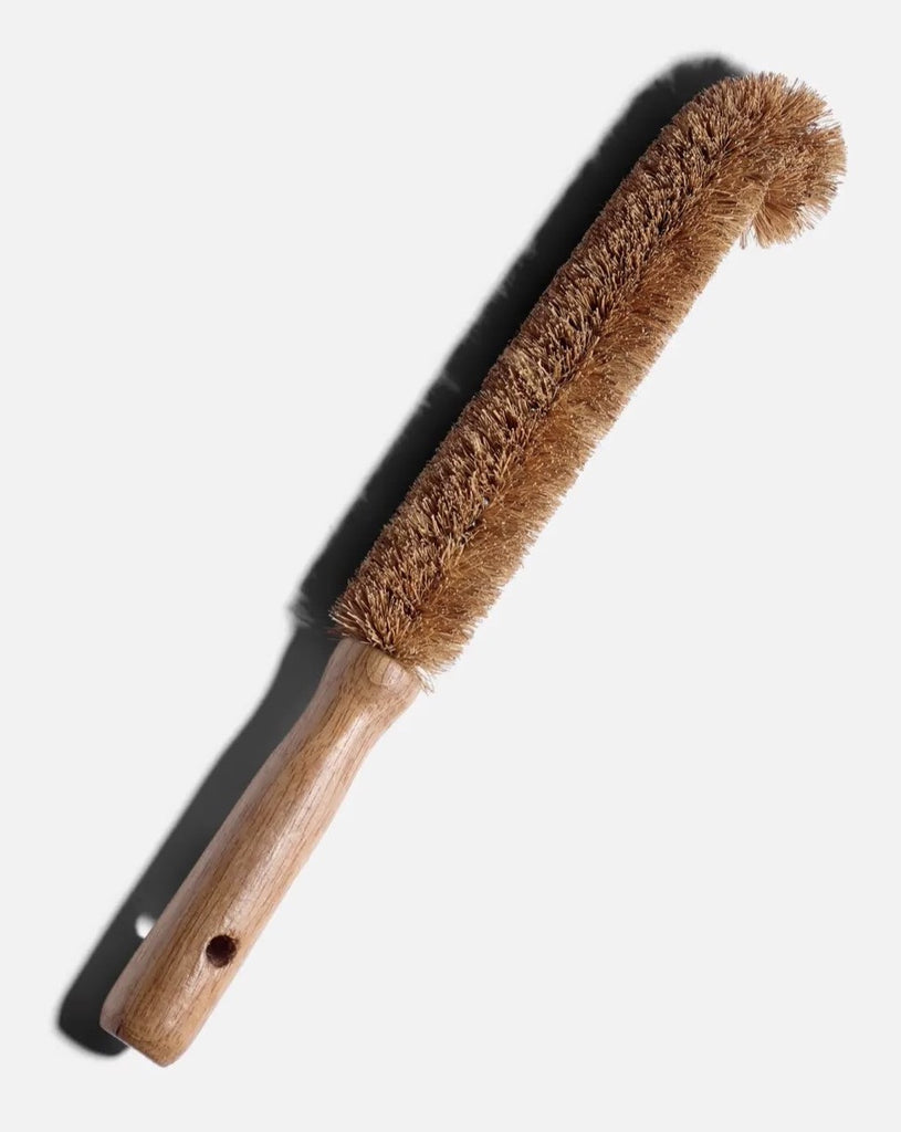 Made of: Beechwood handle, steel wire center, and coconut husk fiber bristles.
