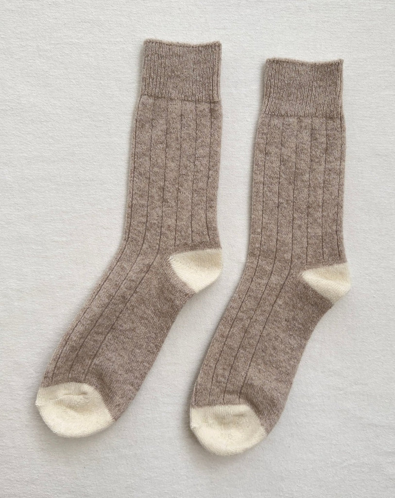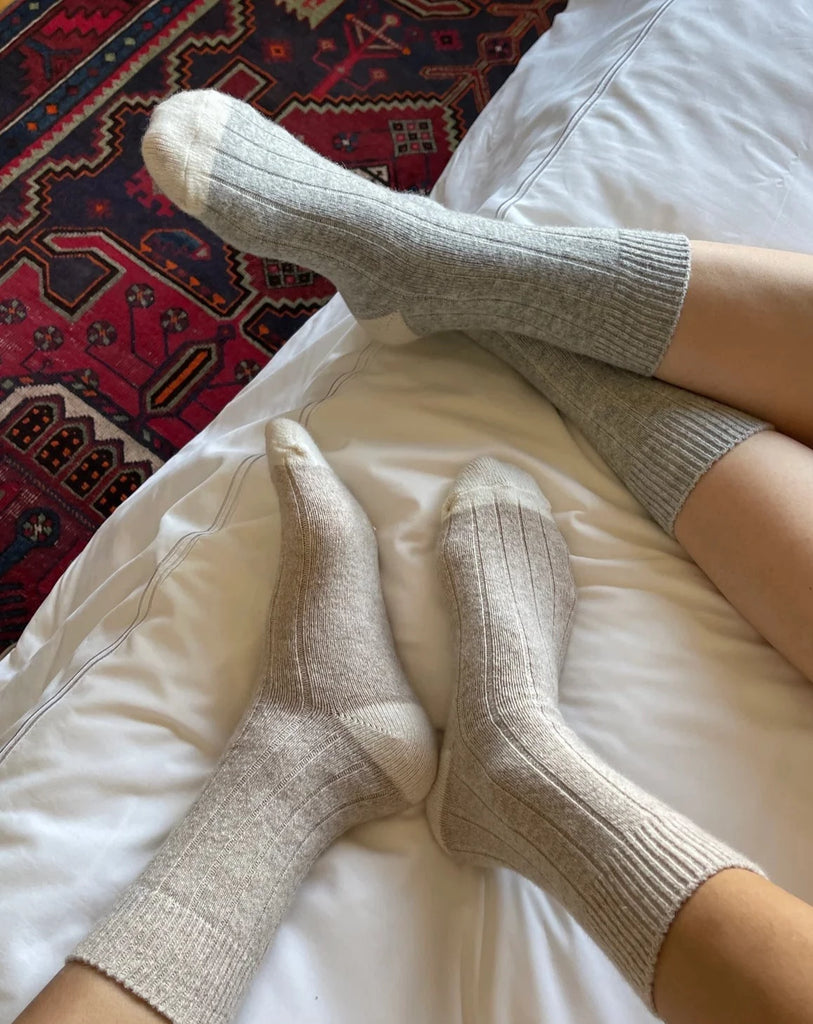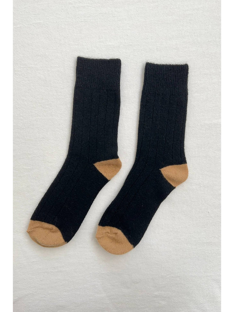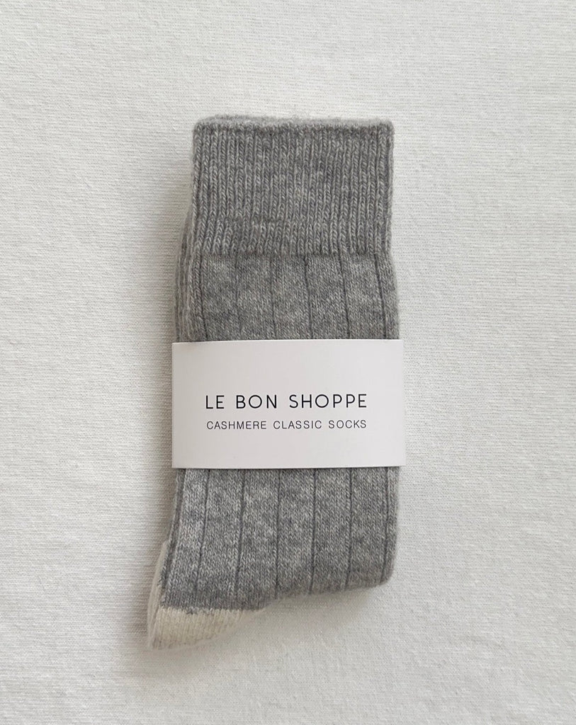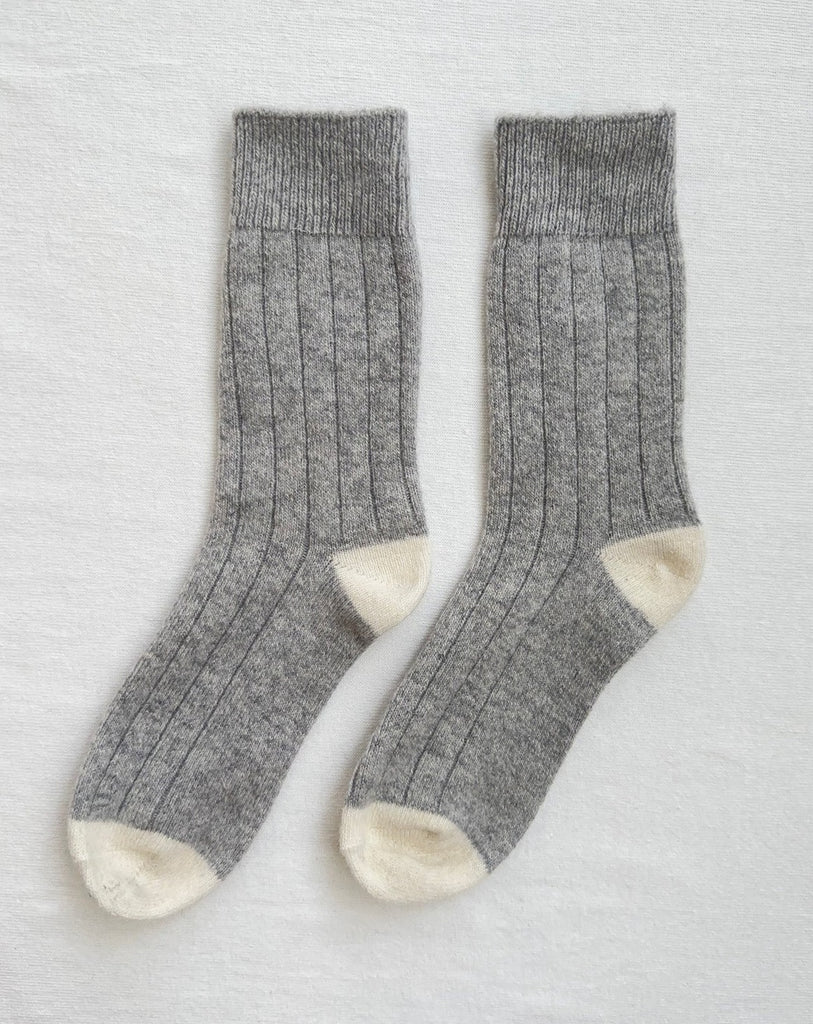 These cozy cashmere cuties will keep you warm all winter long! Cashmere blended socks with a wide ribbing detail and tonal contrasting heel and toe.