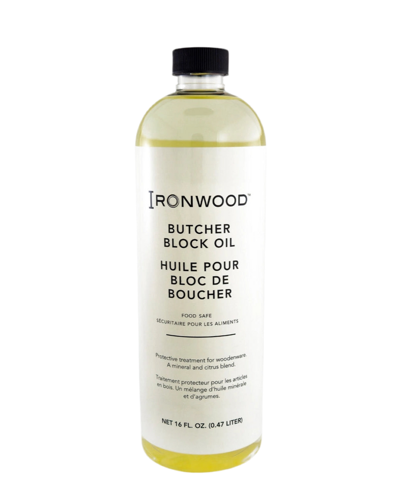 Help protect and bring new life to your wooden cutting and serving boards with this 16 oz food grade mineral oil from Ironwood Gourmet. This mineral and citrus oil blend helps protect the wood from drying out and creates a protective layer to prevent warping and swelling. This cutting board oil is odorless, colorless, and will not leave any taste behind on your board. You will only notice that your cutting or serving board has a beautiful shine to it!