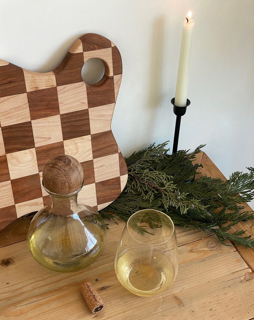 These hand blown decanters are the perfect compliment to your favorite spirit. It's curved nape is intended to allow oxygen to interact with the spirit and for the nuanced aromas to bloom.